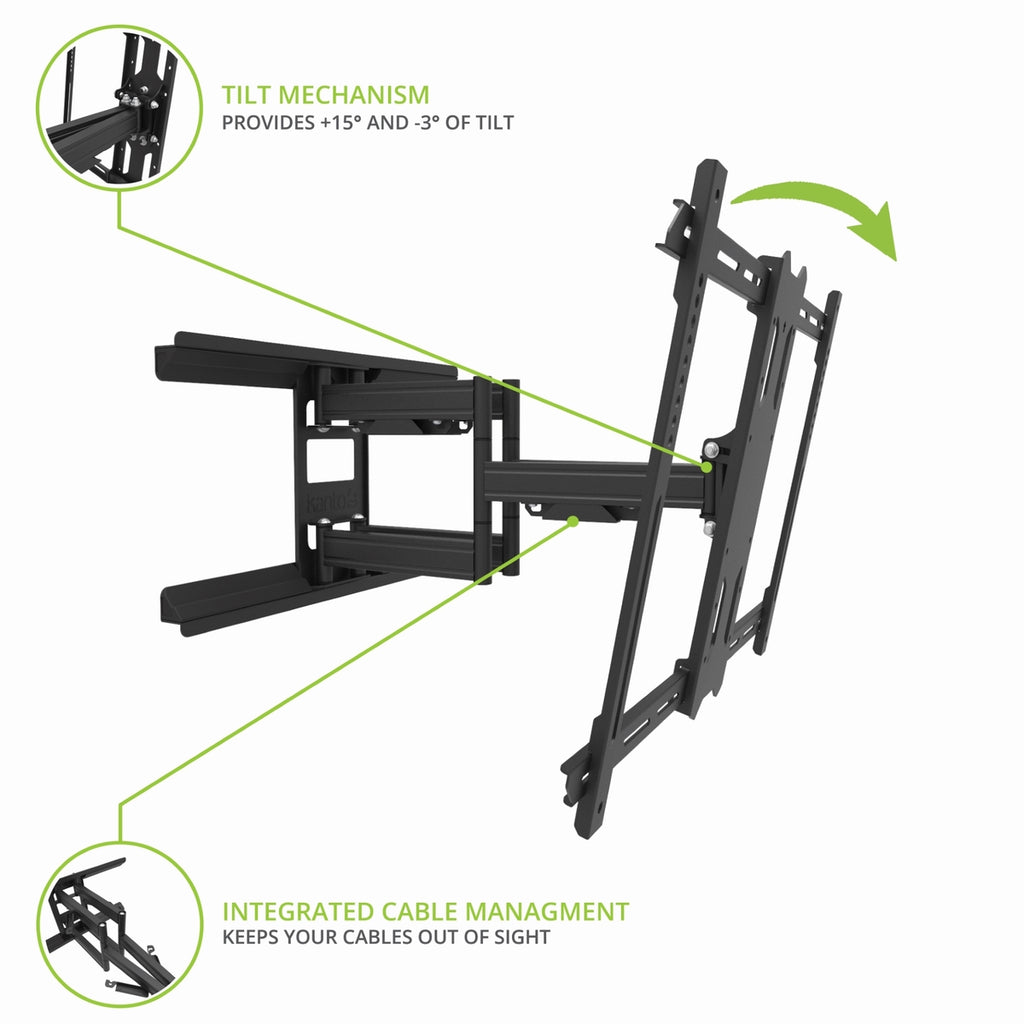Mount your TV in the harshest of environments with the PDX650SG. This class-leading full-motion outdoor TV mount offers fully articulating, stainless steel arms that let you watch your large TV weighing up to 125 lbs from any angle. Starting with a proprietary pre-treatment process, all metal surfaces are protected by a galvanized and UV-resistant powder-coated finish to ensure trustworthy operation for years to come. Included stainless steel Security Torx TV screws provide peace of mind while the all-metal cable management system resists degradation from UV exposure unlike plastics which may become brittle over time. Meeting the stringent criteria defined by UL 2442 part 2, PDX650SG is the benchmark for all other outdoor TV mounts.